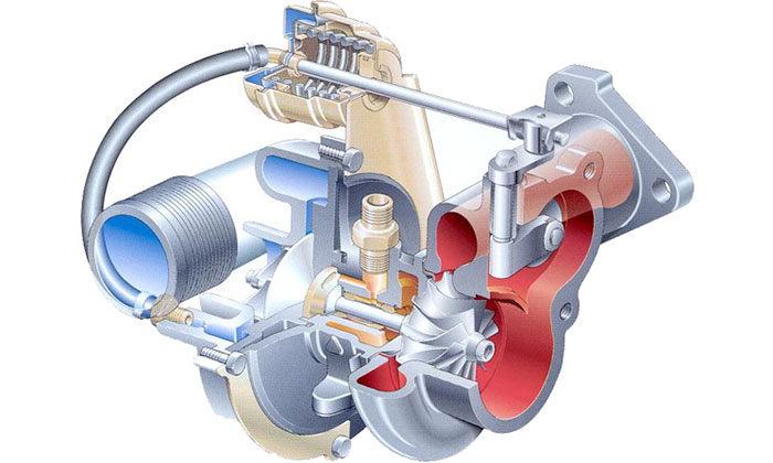 Eksoz manifoltuna monte edilen turbonun türbün çarkı eksoz gazları tarafından döndürülür.